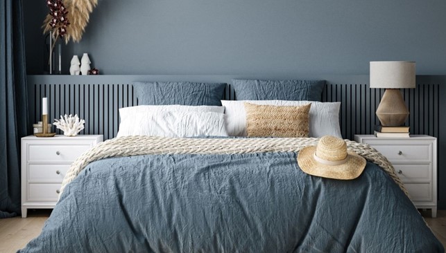 Per la camera da letto il denim drift è la tonalità perfetta. Questo azzurro tendente al grigio infonde una sensazione di calma e serenità, favorendo un riposo profondo. Se sei alla ricerca di un’atmosfera più romantica e dolce, il rosa è il colore ideale. Spesso associato alla tenerezza e alla calma interiore, è perfetto per una camera da letto matrimoniale.
